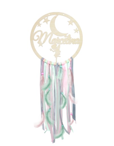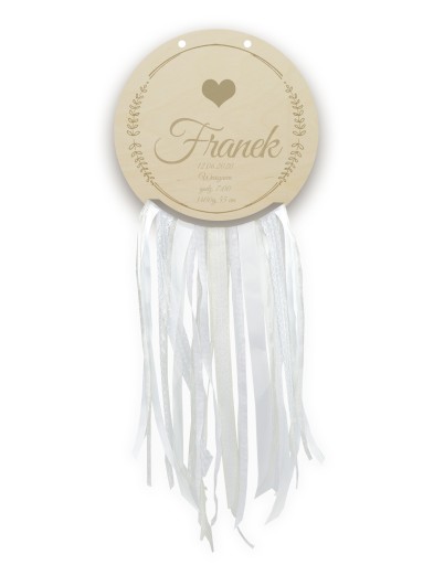 Оригінальна дерев'яна табличка з ловцем снів з натурального дерева, стрічок, пір'я та ниток.