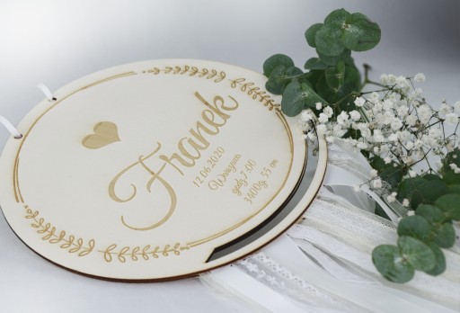 Також він стане чудовим доповненням до дитячої кімнати. На дерев'яному свідоцтві буде вигравірувана найважливіша інформація: дата, час, вага та зріст народження.