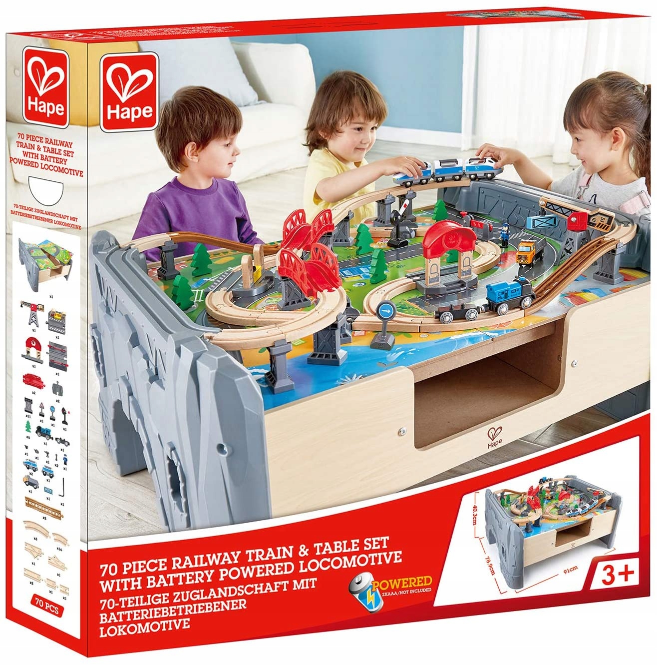 Duża KOLEJKA DREWNIANA MIASTO ze stołem na Baterie