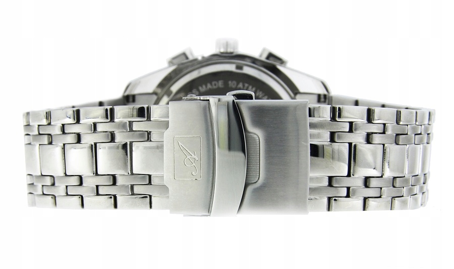 Męski zegarek Adriatica z chronografem i datownikiem, na stalowej bransolecie. Koperta wykonana ze stali szlachetnej w srebrnym kolorze. Szafirowe szkło oraz wodoszczelność 10 ATM.