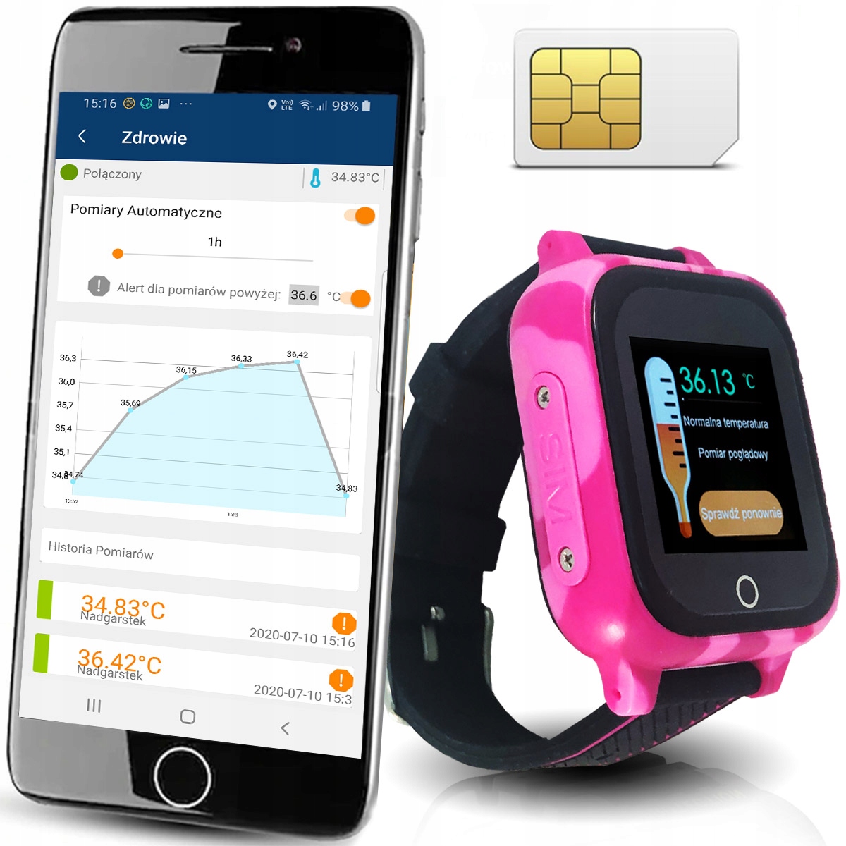 Smartwatch Детей, Измерение Темпер. IP67 CALMEAN CARE