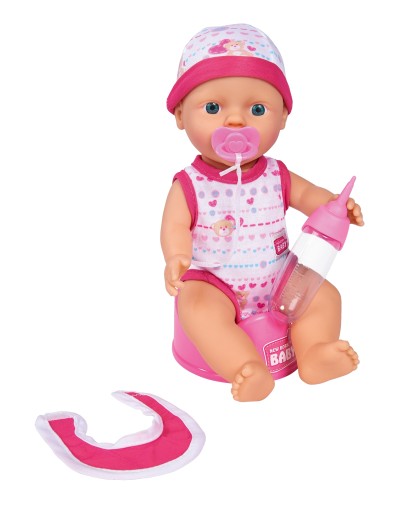 лялькамає висоту 30 см. Вона одягнена в білі комбінезони з сердечками та плюшевими ведмедиками та кепку в тон. лялькаможе пити і піти на горщик. Завдяки функціональності та зовнішньому вигляду дівчина може відчути себе справжньою мамою, яка доглядає за новонародженим малюком.