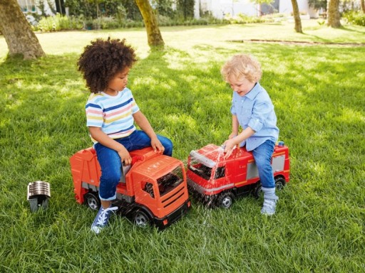 Продукція німецької компанії LENA має рухливий коптер, кошики в комплекті Сертифікат TUV Товар найвищої якості Подвійна вантажівка з піском, ідеально підходить для пісочниці або для гри вдома. Іграшки цієї серії виготовлені з високоякісних матеріалів з високою механічною міцністю. Їх перевагою є красиві, яскраві кольори, стійкі до вицвітання. Самоскид ідеально підходить для пісочниці, на пляжі, на дитячому майданчику і вдома. Іграшку можна використовувати як для катання, так і як звичайну іграшку, що робить гру ще приємнішою.