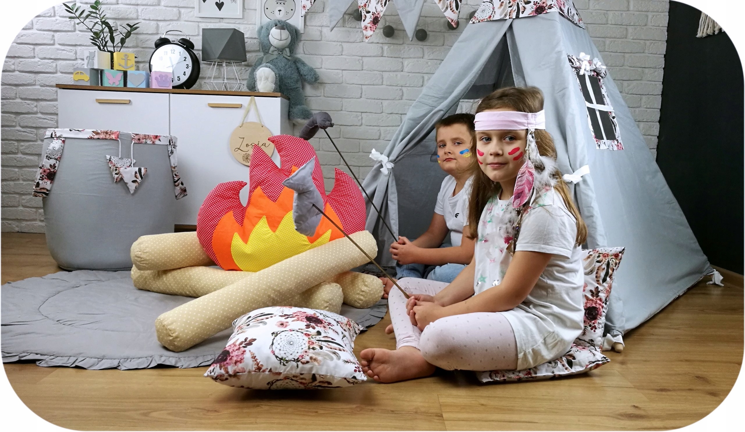 Zestaw tipi to marzenie każdej małej dziewczynki i każdego małego chłopca. Tipi to doskonałe miejsce na herbatki dla lalek, zabawy z przyjaciółmi czy popołudniową drzemkę, idealny do pokoju dziecięcego na długie bajeczne wieczory.