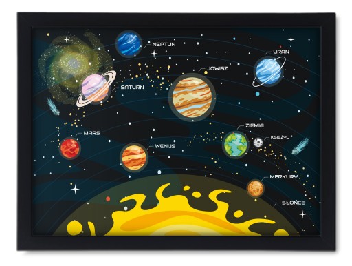 Плакат, що ілюструє Сонячну систему та її планети з підписами.