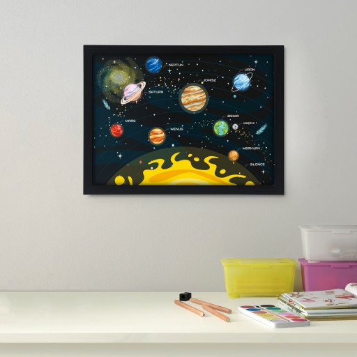 Плакат, що ілюструє Сонячну систему та її планети з підписами.