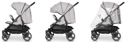 - незалежно регулюються спинки та підніжки обох сидінь (одна дитина може сидіти, а інша лежати)