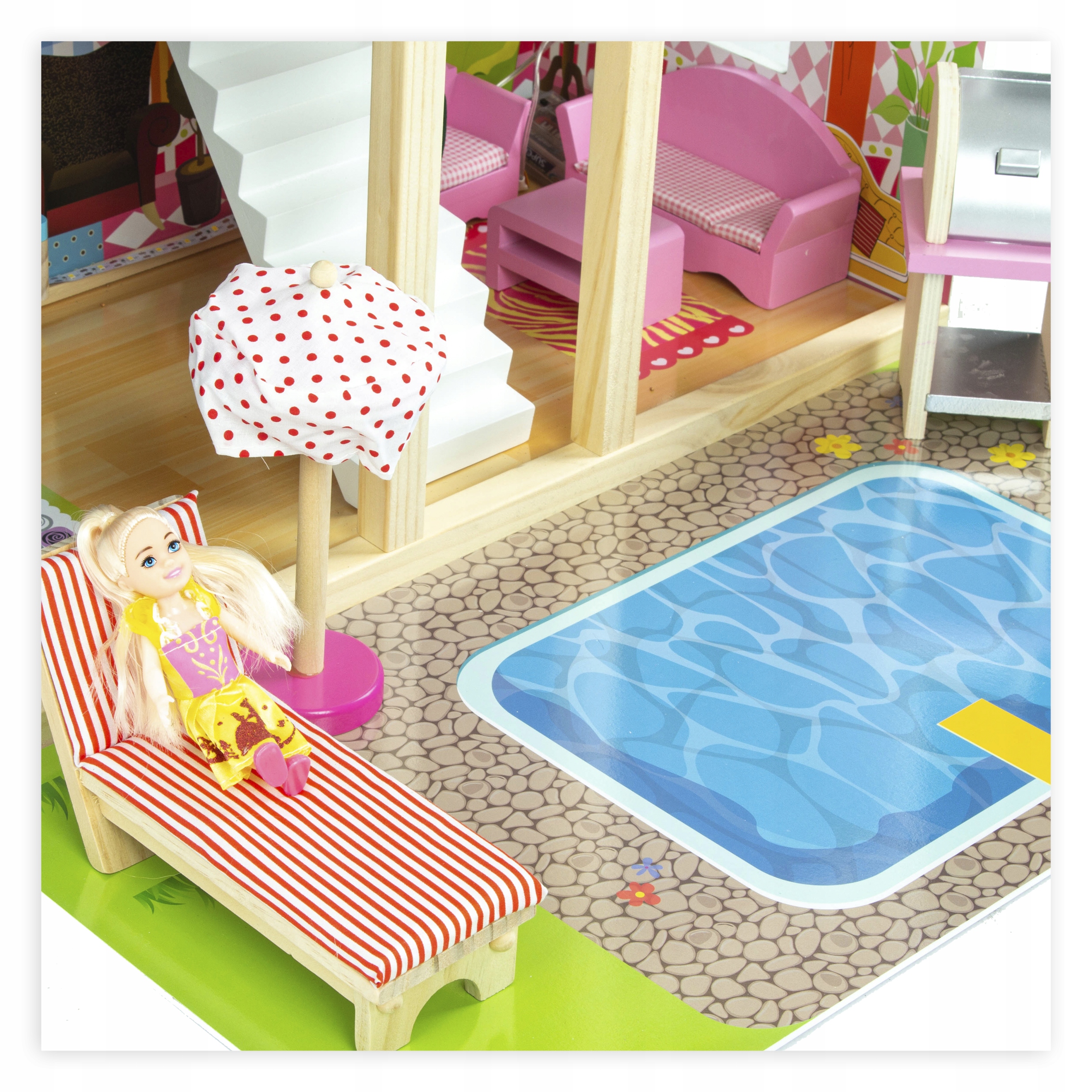 БОЛЬШОЙ ДЕРЕВЯННЫЙ ДОМИК ДЛЯ КУКОЛ МЕБЕЛЬ ДЛЯ+КУКЛЫ+БАССЕЙН