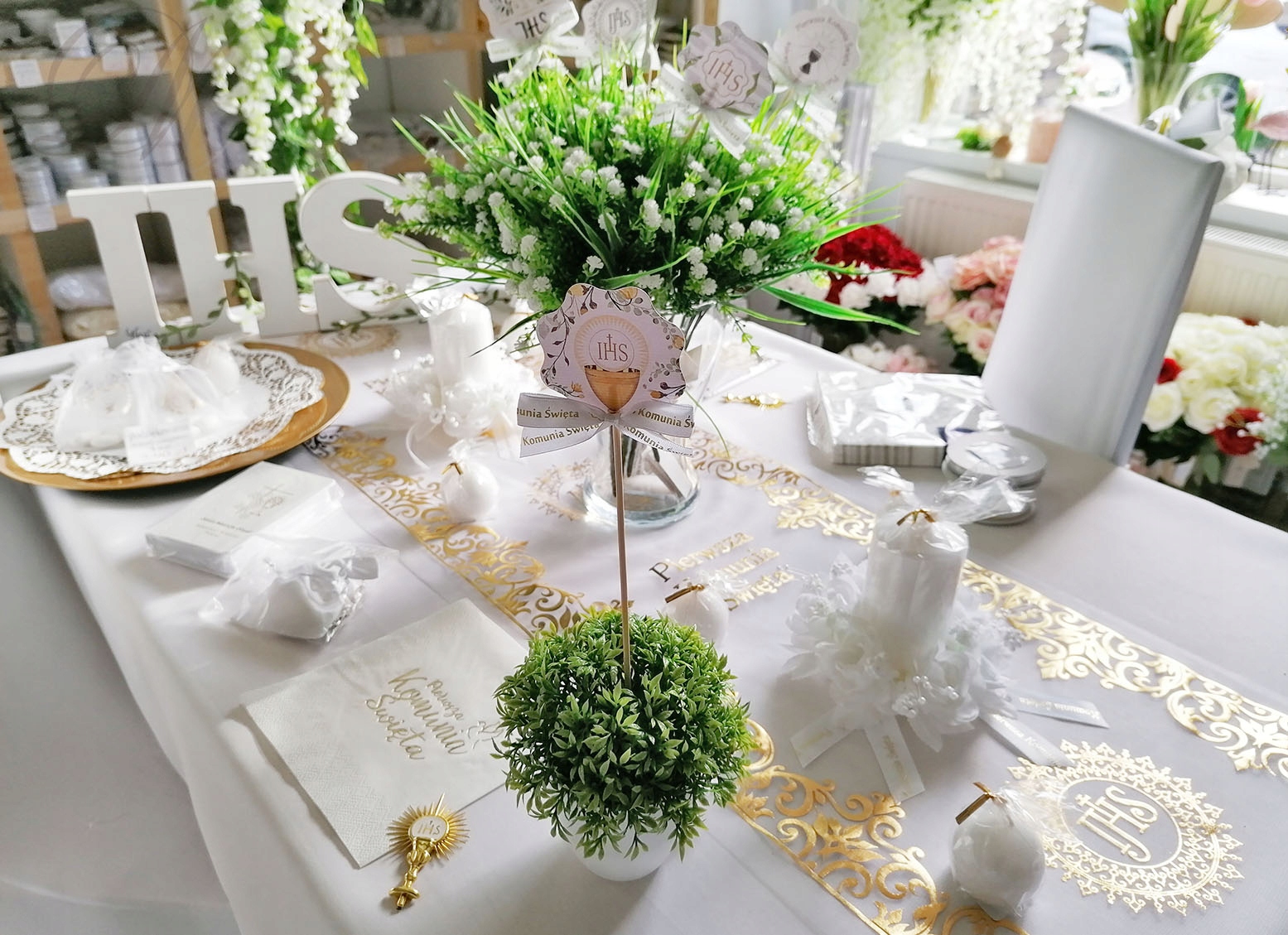 Do organzy polecamy DEKORACJE KOMUNIJNE widoczne na zdjęciach i dostępne na innych naszych aukcjach, czyli: