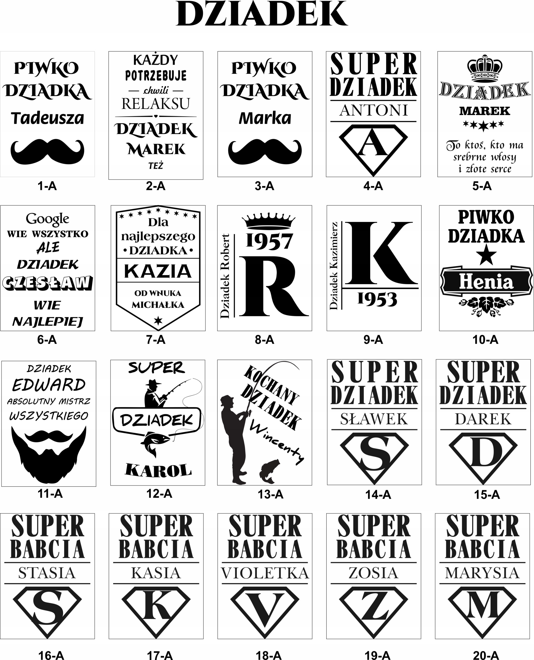 Numeru wybranego wzoru (z ewentualną modyfikacją np. imienia)