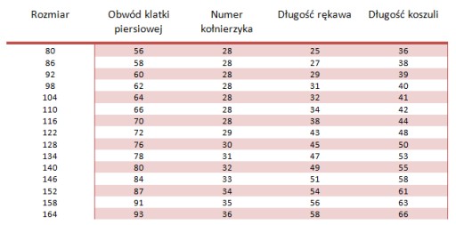 Примітка: розміри в таблиці можуть відрізнятися на +-1 см.