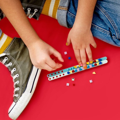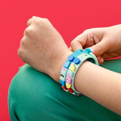 У набір входять дві регульовані еластичні стрічки міфічного та синього кольорів. Вони підходять для будь-якого зап’ястя і можуть бути прикрашені 32 плитками на тему монстрів. Усе це легко та інтуїтивно зрозуміло, тож діти можуть просто почати створювати індивідуальні прикраси, які відповідатимуть їхньому вбранню чи настрою.
