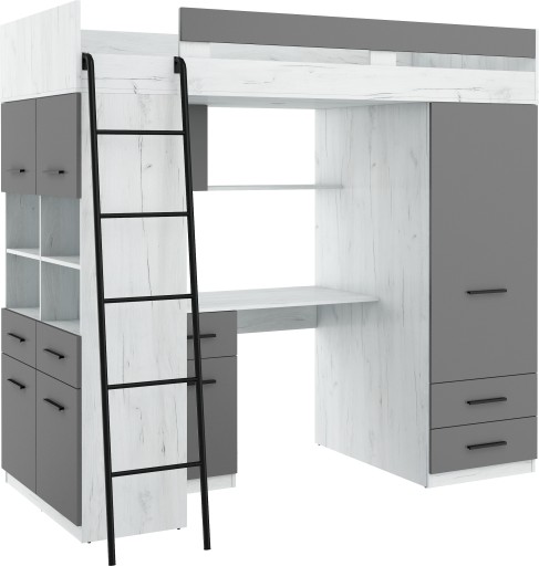 Антресоль LEVEL - це практичний і функціональний предмет меблів, який можна використовувати в дитячій або підлітковій кімнаті. Це дозволяє ергономічно використовувати наявний простір. Являє собою двоярусне ліжко зі зручною та безпечною драбиною, яка додатково укомплектована письмовим столом, місткою шафою та полицями. Завдяки цьому, окрім спального місця, він дозволяє легко організувати та зберігати.