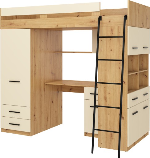 Антресоль LEVEL - це практичний і функціональний предмет меблів, який можна використовувати в дитячій або підлітковій кімнаті. Це дозволяє ергономічно використовувати наявний простір. Являє собою двоярусне ліжко зі зручною та безпечною драбиною, яка додатково укомплектована письмовим столом, місткою шафою та полицями. Завдяки цьому, окрім спального місця, він дозволяє легко організувати та зберігати.