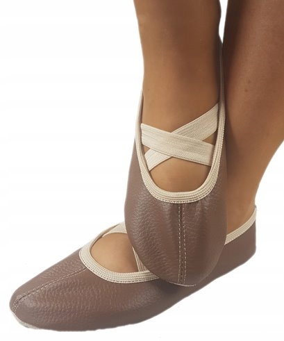 Wzmocniona podeszwa daje dłuższą żywotność. Zewnętrzna warstwa to dwoina cielęca, która posiada naturalną właściwość antypoślizgową, wewnętrzna warstwa to skóra podszewkowa. Baletki są wygodne i wytrzymałe. Różnorodne gumki powodują, że baletki stają się niezwykle eleganckie i wyjątkowe. Baletki przeznaczone do tańca, rytmiki, ćwiczeń, a także do chodzenia "po domu", łatwo zabrać je ze sobą "w gości". Wygodne i lekkie. Wykonane są w klasycznych rozmiarach. Istnieje możliwość wyboru rozmiaru od 24-42. Posiadamy różne wzory i kolory. Zapraszamy do kupna.