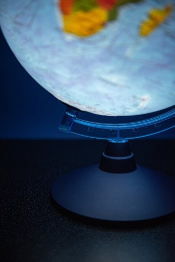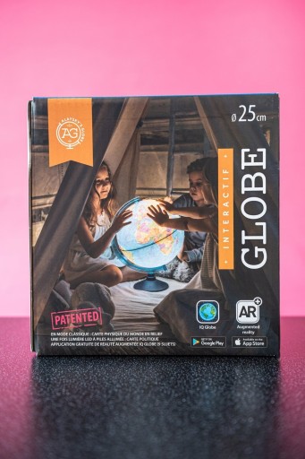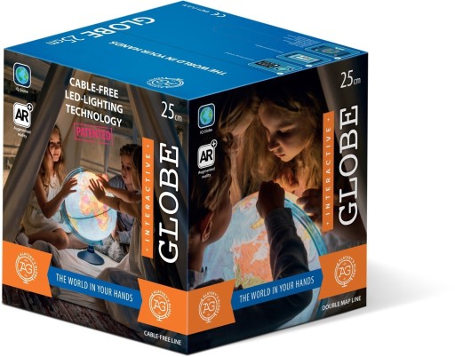 Такої розвиваючої іграшки ще не було! IQ GLOBE — це великий обертовий глобус, який має дві накладені одна на одну карти — географічну та політичну. Глобус має підсвічування, тому його можна використовувати і як світильник в дитячій кімнаті. Відрізняє його використання сучасних технологій – при вимкненому світлі можна побачити географічну карту на глобусі. Після ввімкнення світлодіодного світла з’являється інформація з політичної карти. Географічна карта виконана в 3D, тому дитина може вчитися на дотик, спостерігаючи та читаючи те, що написано на карті.