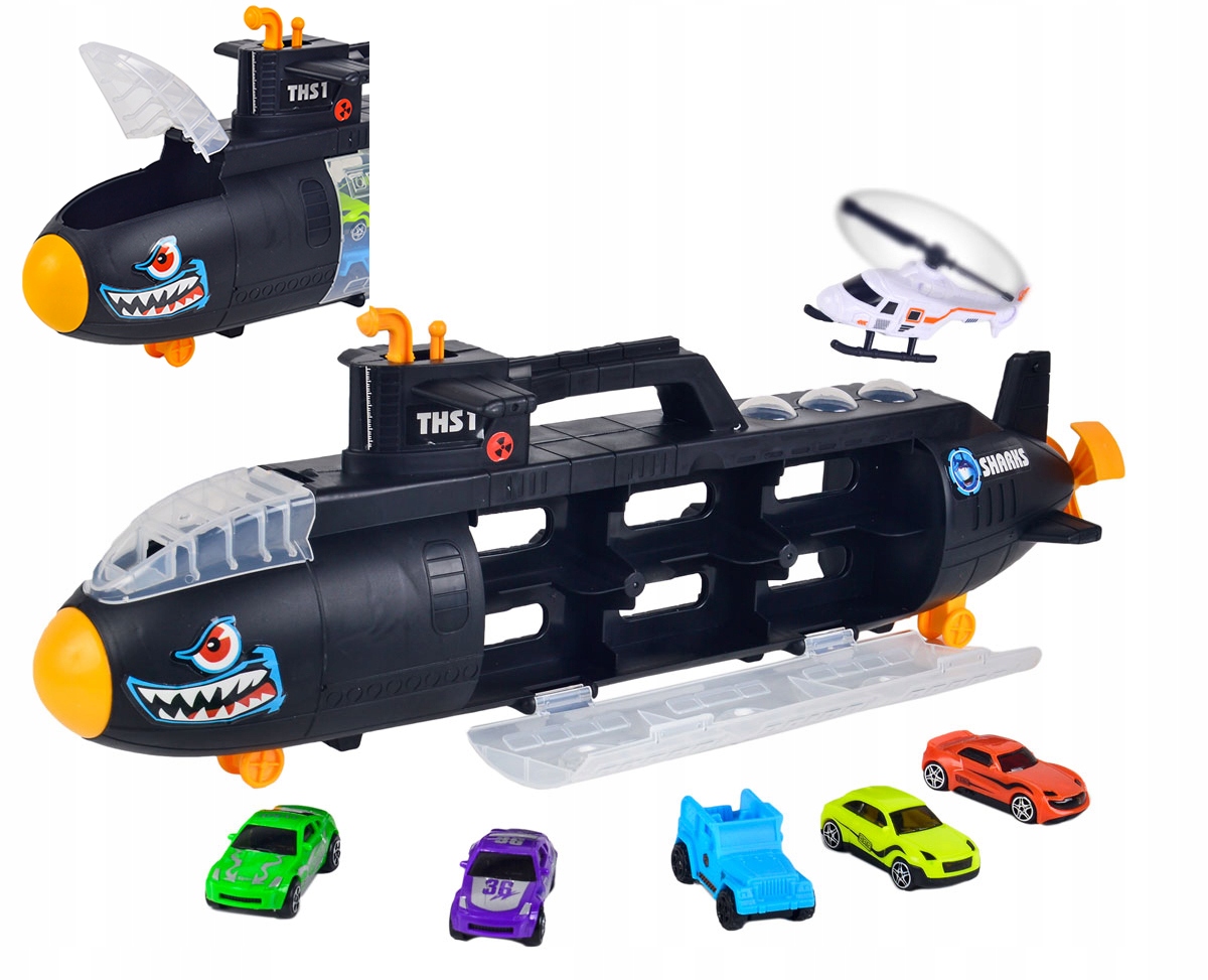 Łódź podwodna jest przystosowana do przewozu 5 samochodów oraz helikoptera. Łódź w kształcie rekina posiada otwieraną przestrzeń transportową z boku oraz kokpit. Znajdujące się w zestawie pojazdy mają wytrzymałe karoserie. Całość jest wykonana z najlepszych materiałów co potwierdzają certyfikaty CE i EN71.