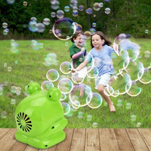 З жабою можна пограти в саду і не тільки. Іграшка випускає велику кількість бульбашок одночасно. Щоб почати веселощі, налийте бульбашкову рідину, що входить до набору, у контейнер, поміщений у рот жаби, а потім увімкніть його за допомогою кнопки на задній панелі. Готовий!