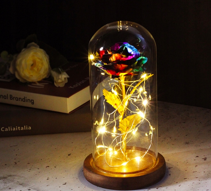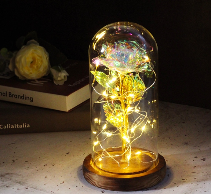 ВЕЧНАЯ РОЗА В СТЕКЛЕ, СТЕКЛЯННАЯ РОЗА +КРАСНЫЙ СВЕТОДИОД