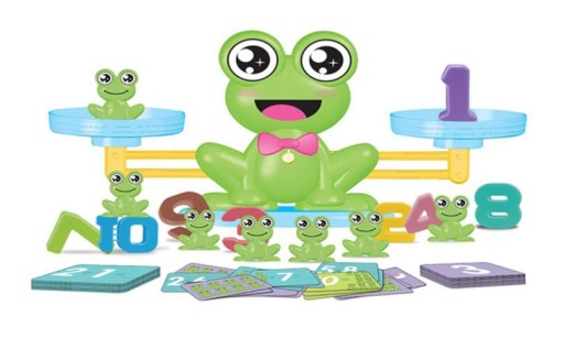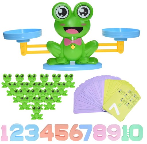 Подивіться, які дива приховує ця іграшка: барвисті ваги з фігуркою жаби, гирі у формі жаб, цифри та картки із завданнями подарують вам довгі години цікавих розваг, які приведуть вас до захоплюючих відкриттів!