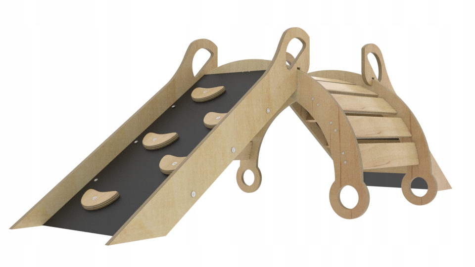 Nakladana zjeżdżalnia oraz ścianka wspinaczkowa wykonana z trwałych i wytrzymałych materiałów pozwala na stworzenie domowego placu zabaw dla Twojego malucha.