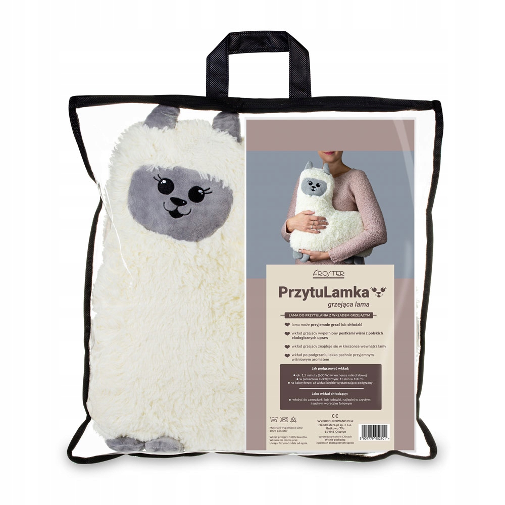 PrzytuLamka to włochata lama, która aż prosi się o przytulanie. Ma sympatyczny pyszczek, jest miła w dotyku, wzbudza ciepłe uczucia, a do tego przyjemnie grzeje i szybko zamieni się w Twój osobisty termofor. W środku lamy znajduje się kieszeń z wkładem grzejącym wypełnionym ekologicznymi pestkami wiśni, których przyjemne ciepło pozwoli Ci się odprężyć. Podgrzewa się go w mikrofalówce i można to robić wielokrotnie.