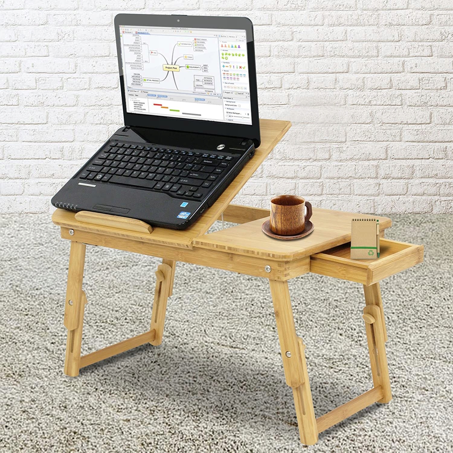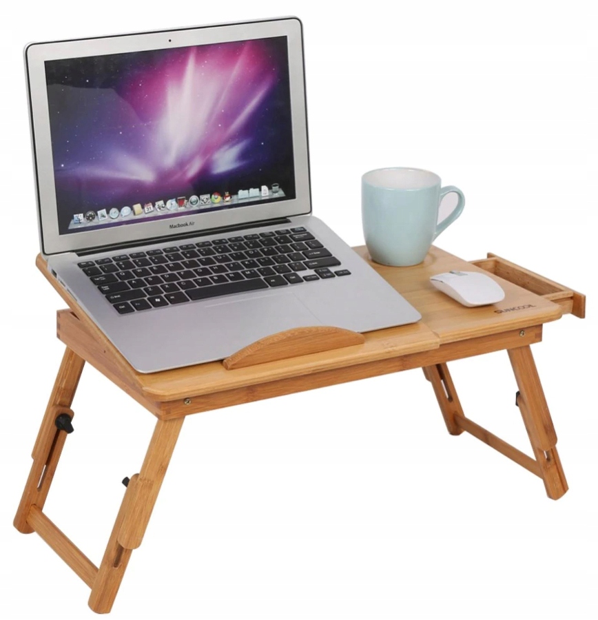 Świetne rozwiązanie dla osób pracujących lub uczących się w domu - rozkładany stolik pod laptopa. Dzięki swojej przemyślanej konstrukcji i dodatkowym funkcjom, pozwoli na urządzenie wygodnego stanowiska pracy i sprawi, że dłuższa praca będzie mniej męcząca. Stolik jest niezwykle uniwersalny; można postawić go na łóżku, kanapie lub podłodze, a po skończonej pracy, można go bardzo szybko złożyć i wsunąć np. pod łóżko lub do szafy - złożony, zajmuje bardzo mało miejsca.