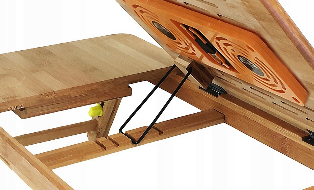 WIELOFUNKCYJNY BAMBUSOWY STOLIK POD LAPTOPA 15" Z WENTYLATOREM CHŁODZĄCYM