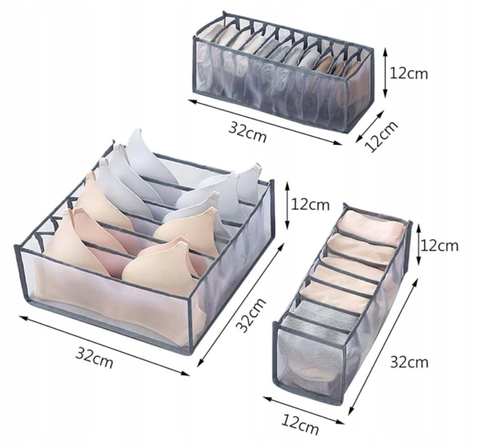 Zestaw zawiera 3 sztuki organizerów do przechowania bielizny, biustonoszy, skarpet itp.