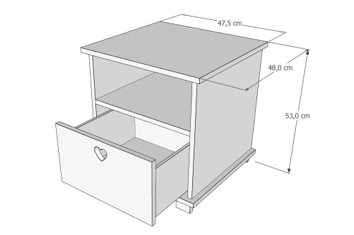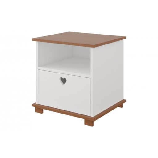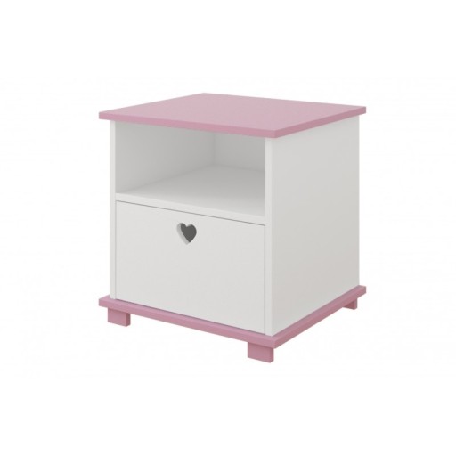Все це легко поміститься на дитячій тумбочці HEART. Крім поверхні стільниці (ідеально підходить для світильника), має зручну поличку і додатковий ящик з ручкою - отвором у формі чарівного сердечка.