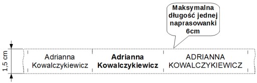 Розмір наклейки становить 15 мм у висоту, довжину та адаптований до тексту та коливається від 20 мм (наприклад, Ada Maj 20 мм) до 60 мм максимум