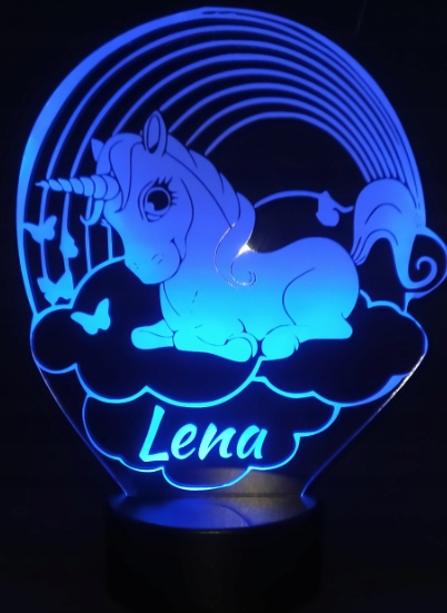 ЛАМПА 3D LED С ПУЛЬТОМ ДИСТАНЦИОННОГО УПРАВЛЕНИЯ ЕДИНОРОГ, С ИМЕНЕМ РЕБЕНКА