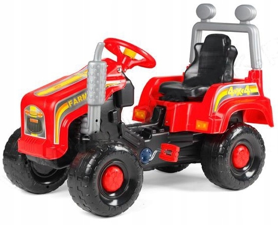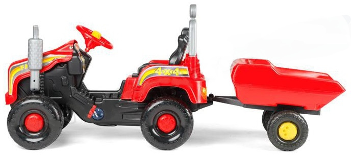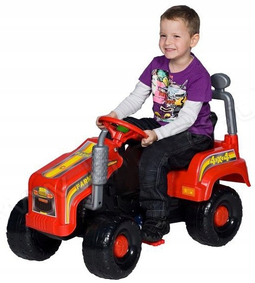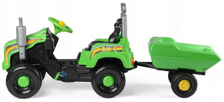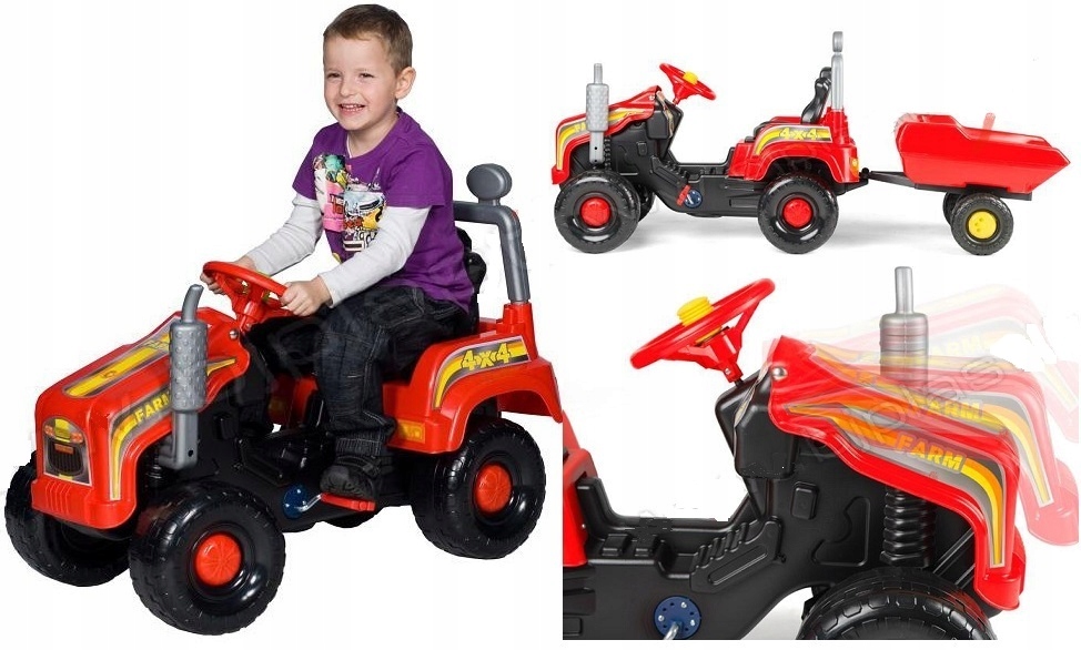 TRAKTOREK POSIADA NAPĘD NA PEDAŁKI ( Z MECHANIZMEM ŁAŃCUCHOWYM ) ORAZ SKRĘTNĄ KIEROWNICĘ, ZA POMOCĄ KTÓREJ DZIECKO KIERUJE CAŁYM ZESTAWEM !!!!