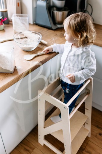 Використовуйте Kitchen Helper, щоб допомогти вам у повсякденних справах, наприклад дістатися до високих шаф. Завдяки міцній фанері наша конструкція легко витримує вагу до 90 кг.