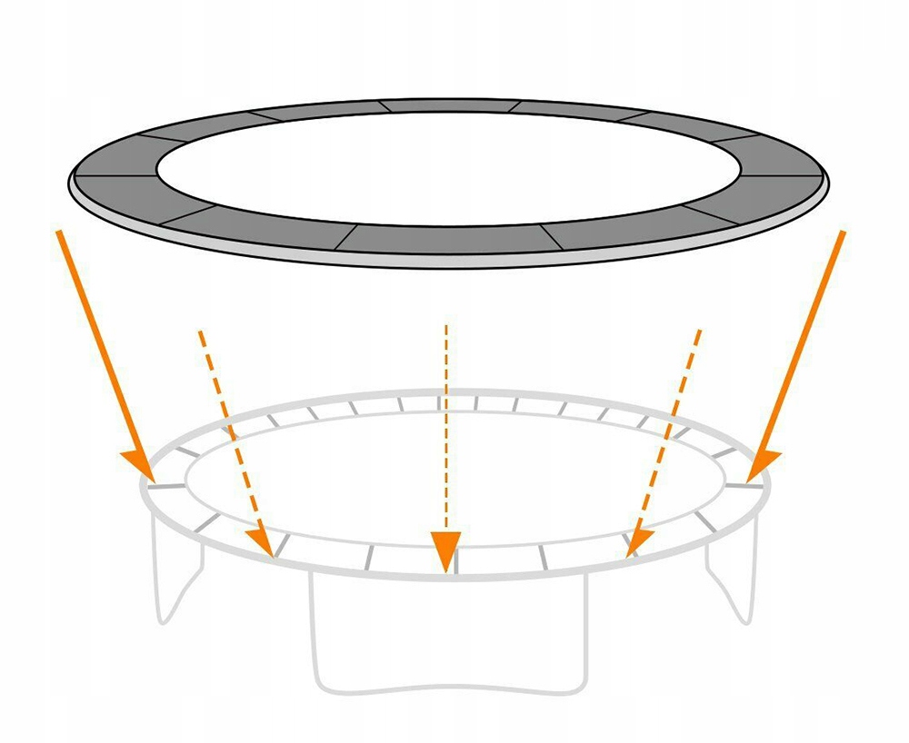 Znakomicie chroni osoby będące na trampolinie przed kontaktem ze sprężynami naciągowymi trampoliny. Jest uniwersalna i może być stosowana do wszystkich trampolin o podanym rozmiarze, niezależnie czy jest zastosowana zewnętrzna czy wewnętrzna siatka. Pokrowiec zabezpiecza również sprężyny od niepożądanych warunków klimatycznych. Odporna na promieniowanie słoneczne (nie blaknie). Wypełniona pianką o grubości aż 1cm spełniającą rolę amortyzatora w razie upadku.