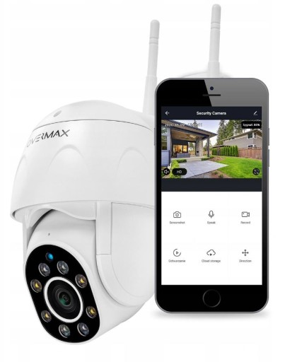 Нова камера Overmax CAMSPOT 4.9 Smart Wi-Fi PTZ Антена WiFi Джерело живлення 230 В з адаптером Мережевий кабель WAN / LAN Шпильки з гвинтами для прикручування до стіни Посібник користувача польською мовою Оригінальна упаковка з серією CAMSPOT