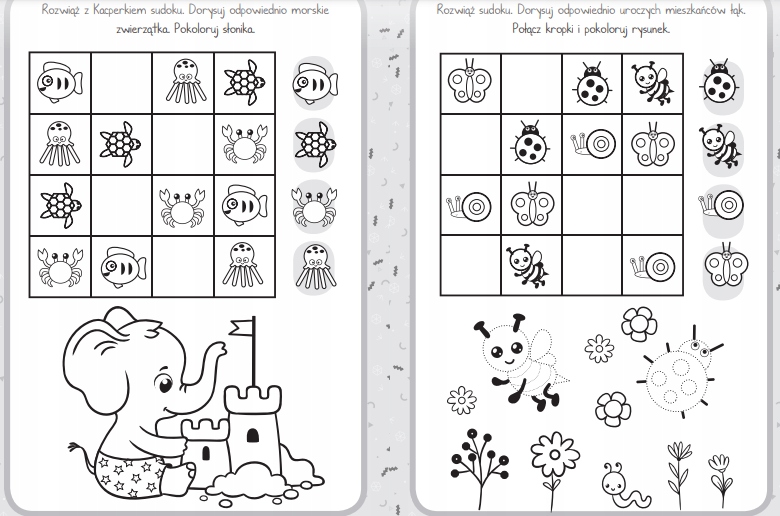 Pasjonujący zestaw łamigłówek! Oryginalne sudoku z obrazkami, nieszablonowe ciągi logiczne, sekwencje symboli oraz cała gama kreatywnych zabaw pobudzają logiczne myślenie, ćwiczą spostrzegawczość i pamięć. Są doskonałą gimnastyką dla mózgu, a także świetną przygodą!