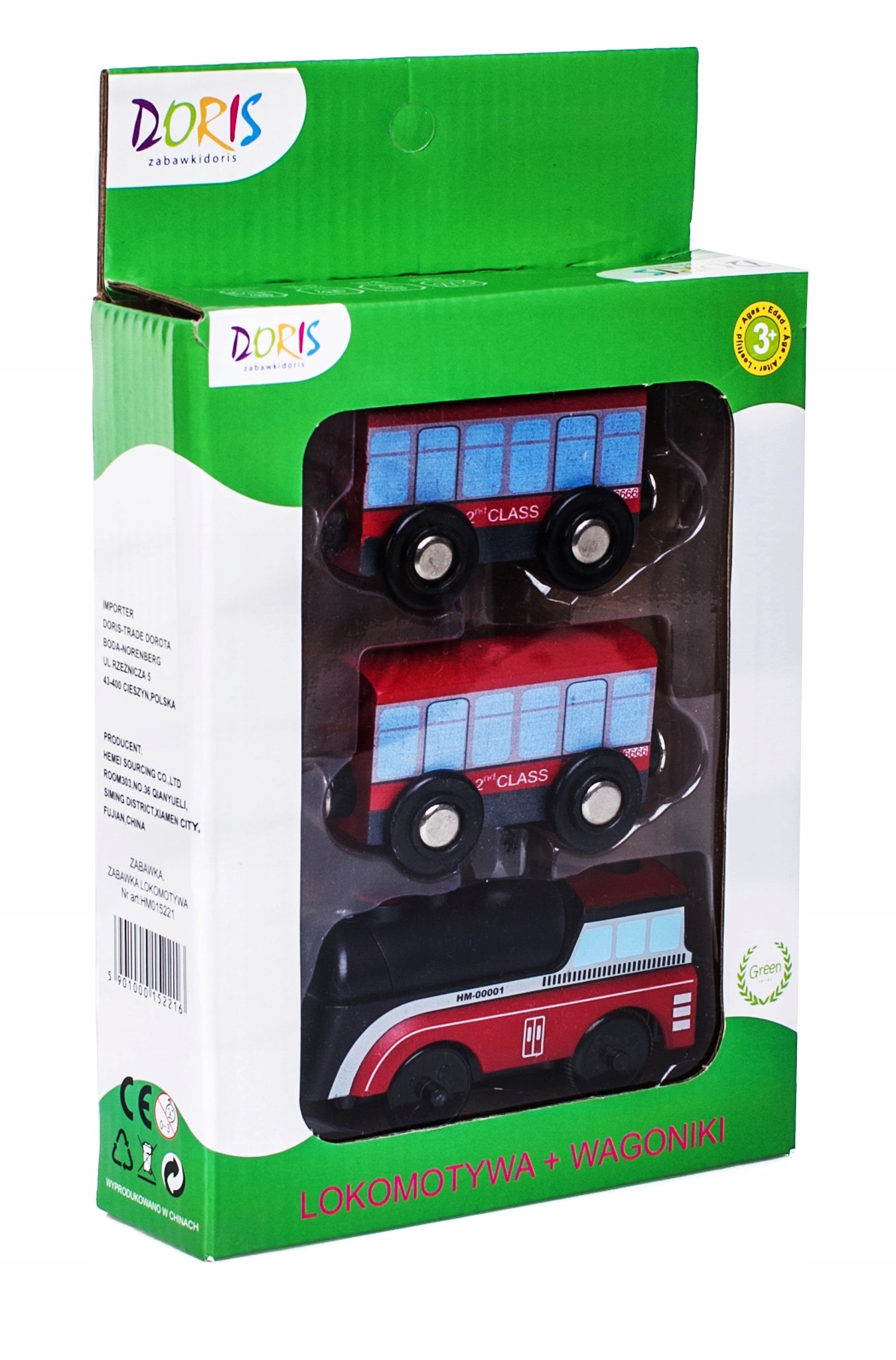 Pociąg pasuje do kolejek drewnianych marki Doris oraz większości torów drewnianych znanych producentów (IKEA).