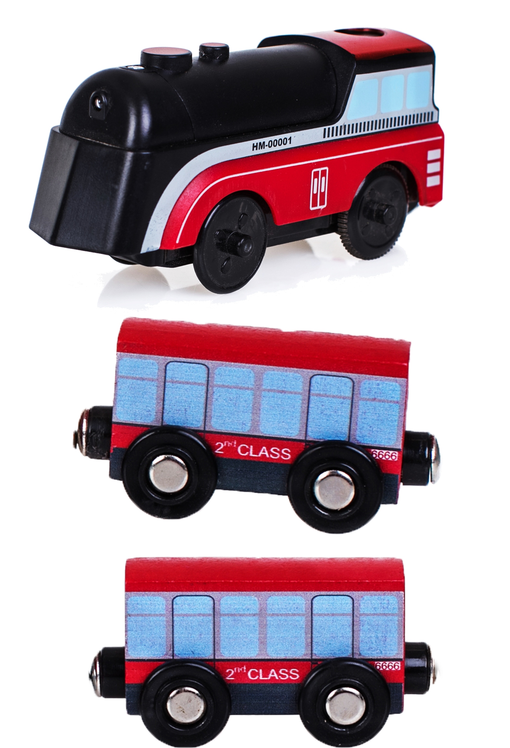 - Elementy pociągu łączone na magnesy.