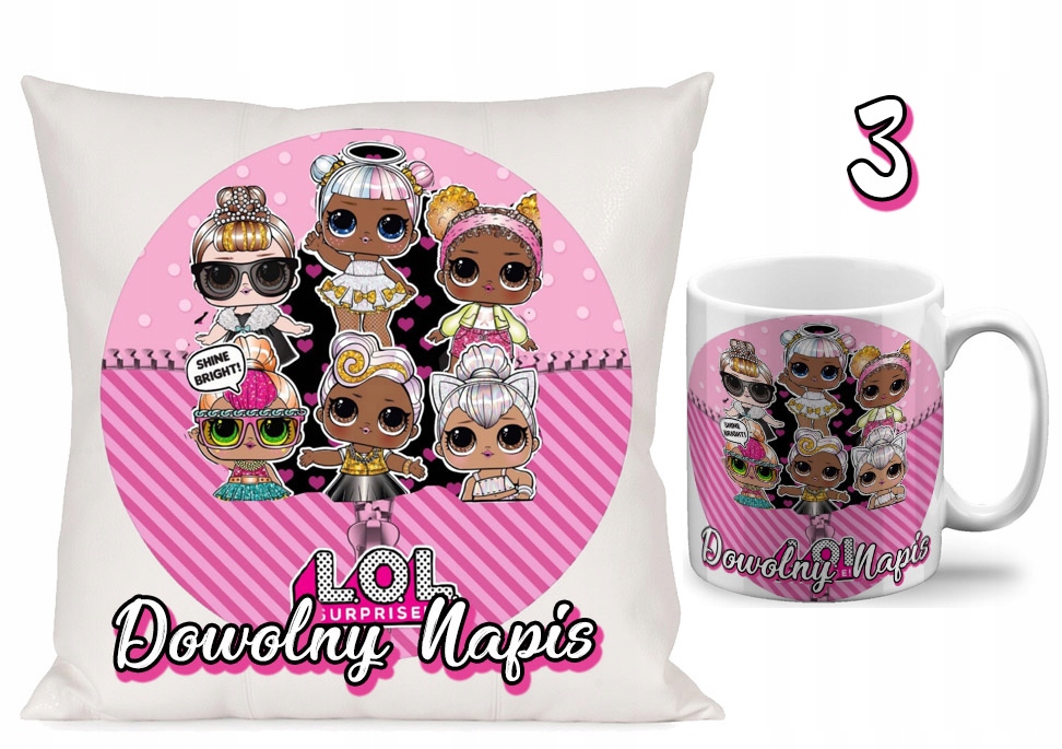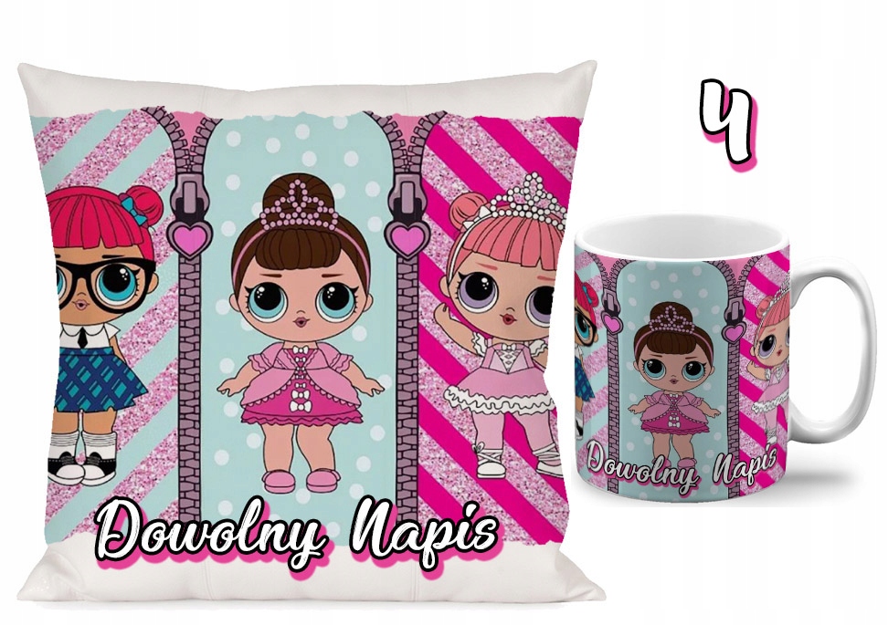 ZESTAW KUBEK + PODUSZKA Z WYBRANYM NADRUKIEM Z MOŻLIWOŚCIĄ PERSONALIZACJI np.: dodania IMIENIA , KSYWKI , lub DOWOLNEGO TEKSTU.