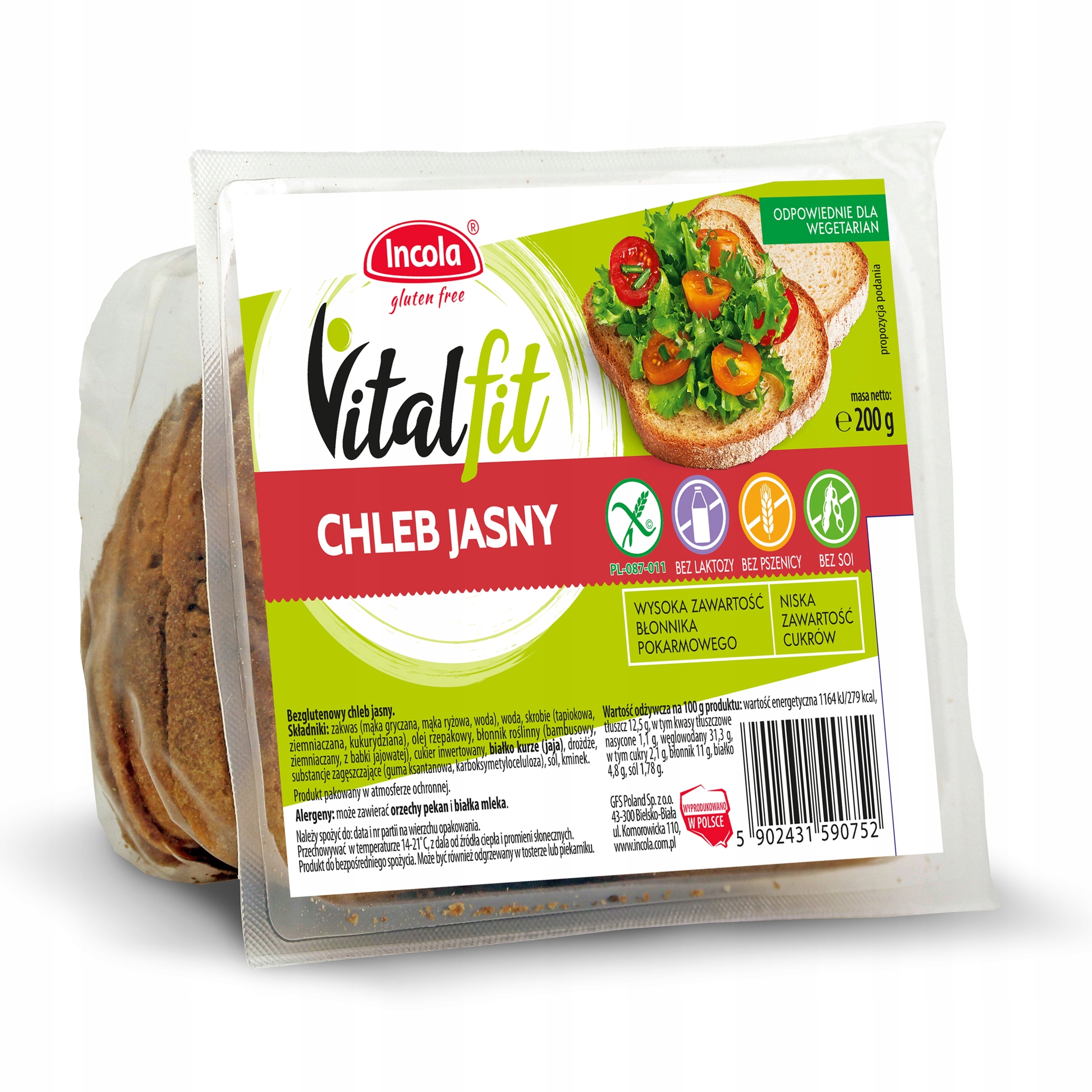 Хлеб Vitalfit ясно без глютена, 200 г Incola