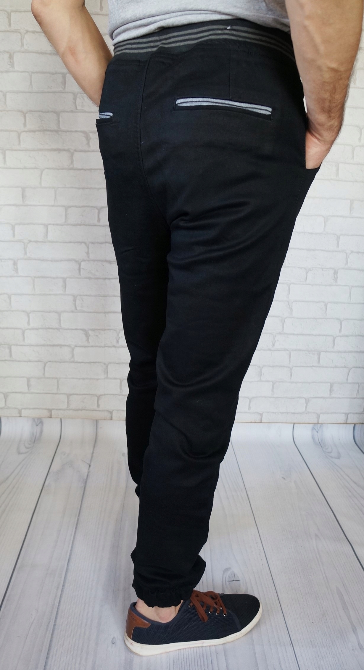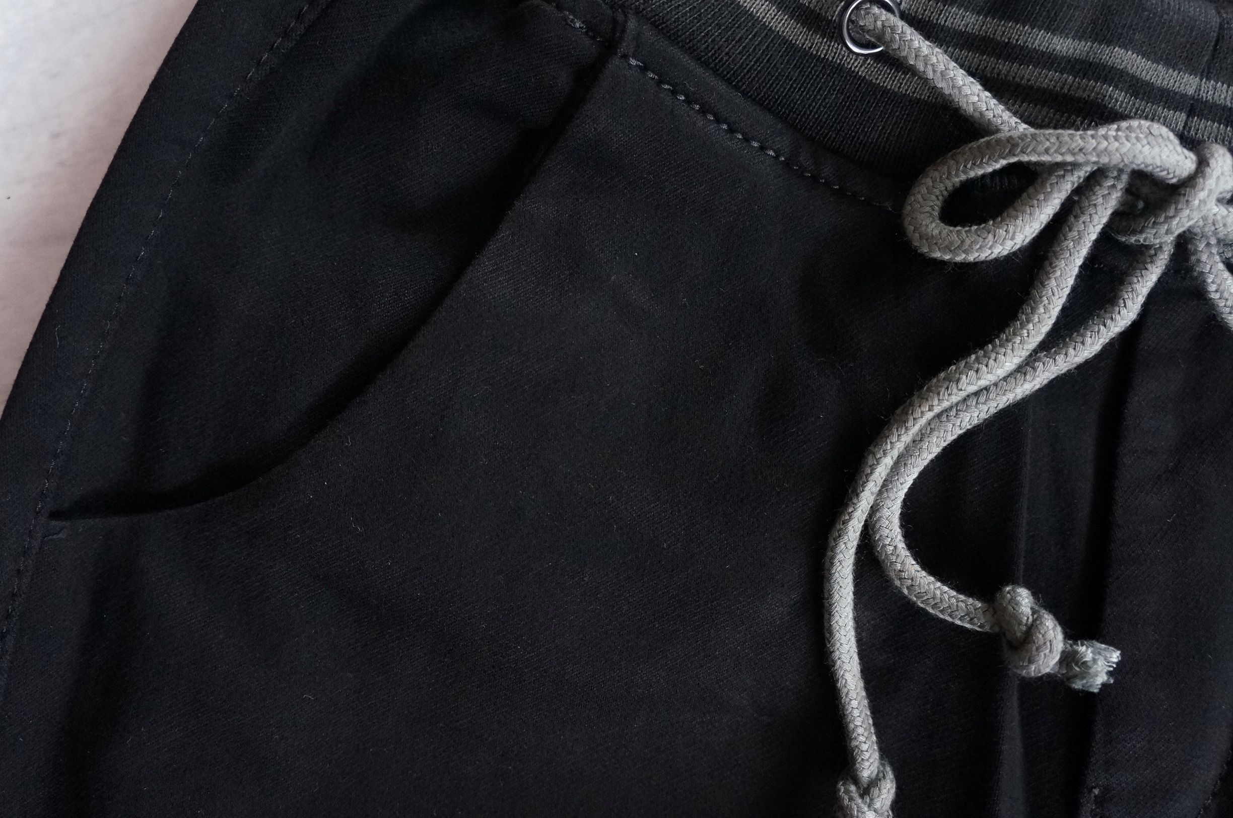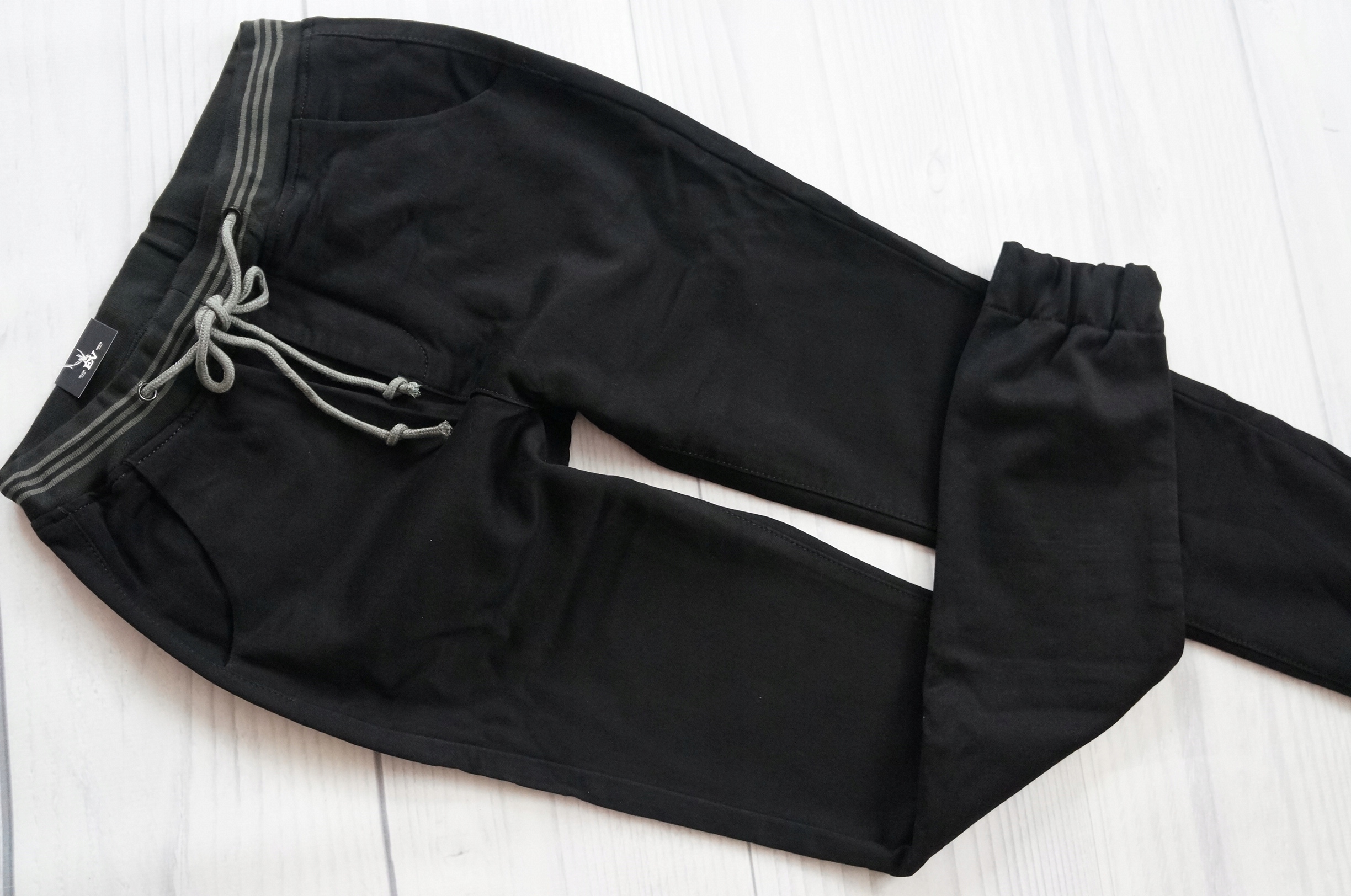- w pasie gumowy ściągacz, dodatkowo spodnie posiadają sznurek do zawiązania