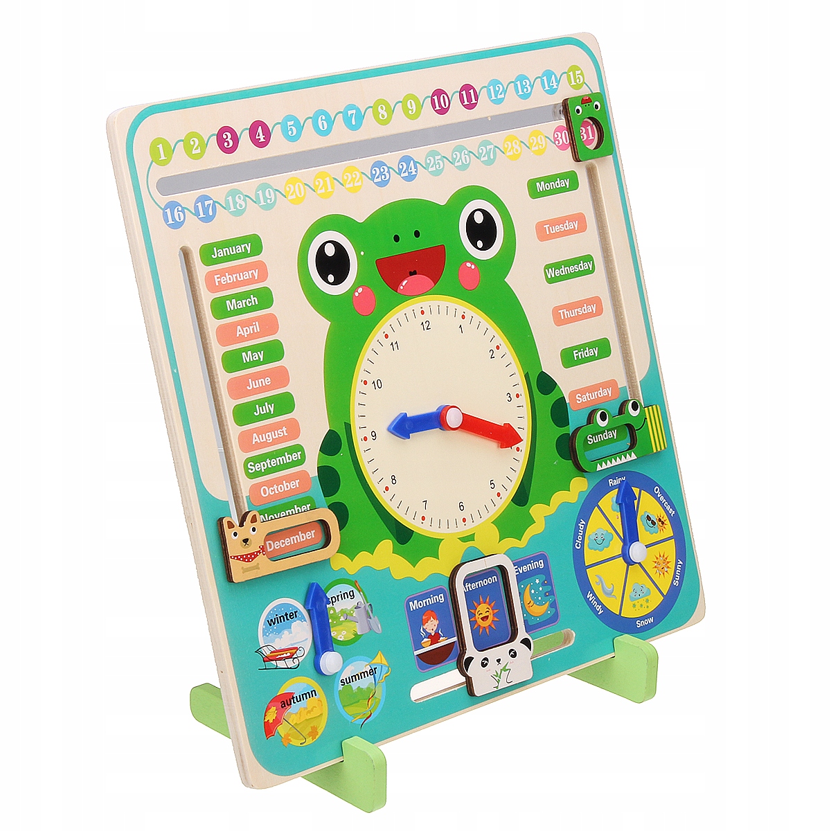 ДЕРЕВЯННАЯ РАЗВИВАЮЩАЯ ДОСКА ЧАСЫ-КАЛЕНДАРЬ ПОГОДЫ