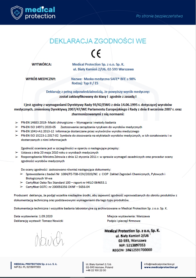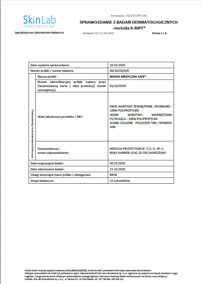 - Wszystkie maski produkowane są wyłącznie z certyfikowanych surowców.