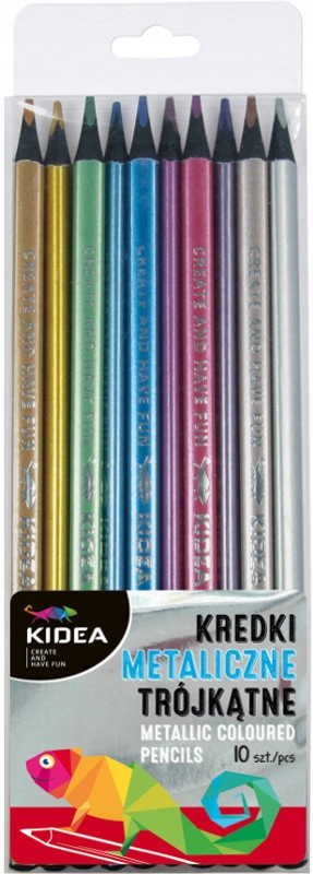 Цветные КАРАНДАШИ ТРЕУГОЛЬНЫЕ МЕТАЛЛИЧЕСКИЕ 10 цветов KIDEA