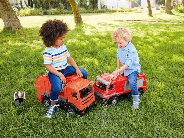 Produkt niemieckiej firmy LENA posiada ruchomy kiper, kosze w zestawie. Certyfikat TUV. Produkt najwyższej jakości.Duża Śmieciarka idealnie nadająca się do piaskownicy lub do zabawy w domu. Zabawki z tej serii produkowane są z wysokiej jakości materiałów o dużej wytrzymałości mechanicznej. Ich zaletą są piękne, żywe kolory odporne na blaknięcie. Wywrotka idealnie sprawdzi się w piaskownicy, na plaży, na placu zabaw oraz w domu. Zabawka może służyć jako jeździk lub jako zwykła zabawka dzięki czemu zabawa jest jeszcze przyjemniejsza.