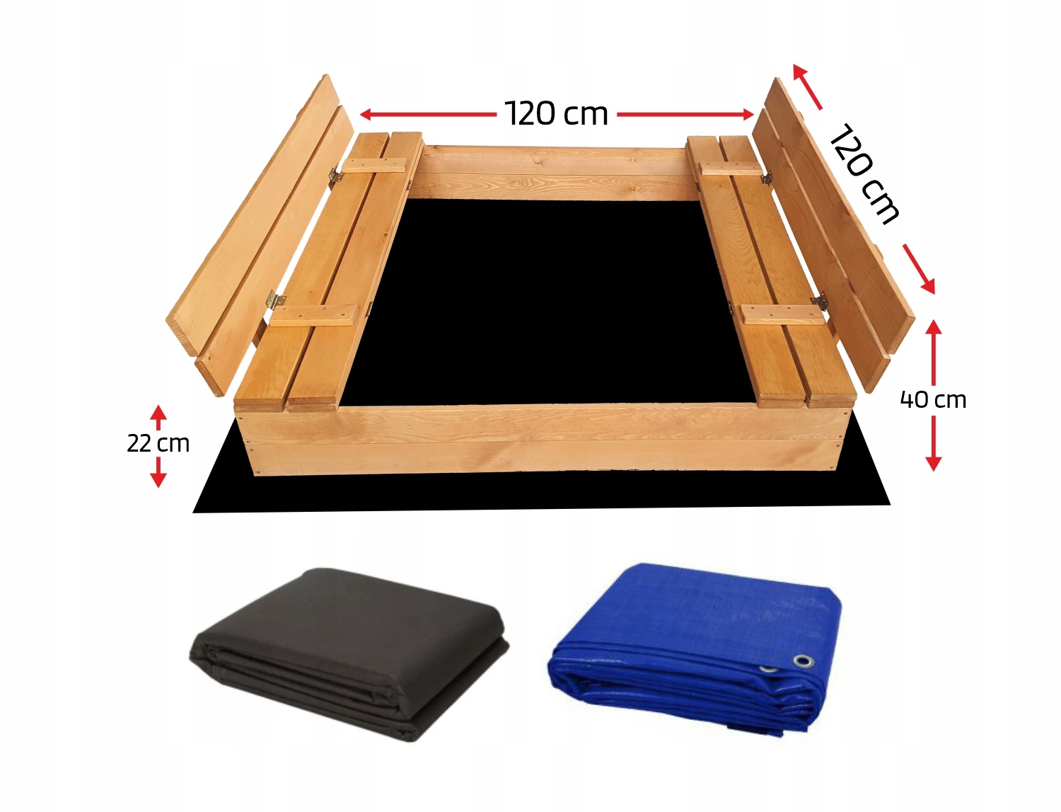 IMPREGNOWANA Piaskownica Dla Dzieci Zamykana z Ławeczkami 120x120 + Gratisy