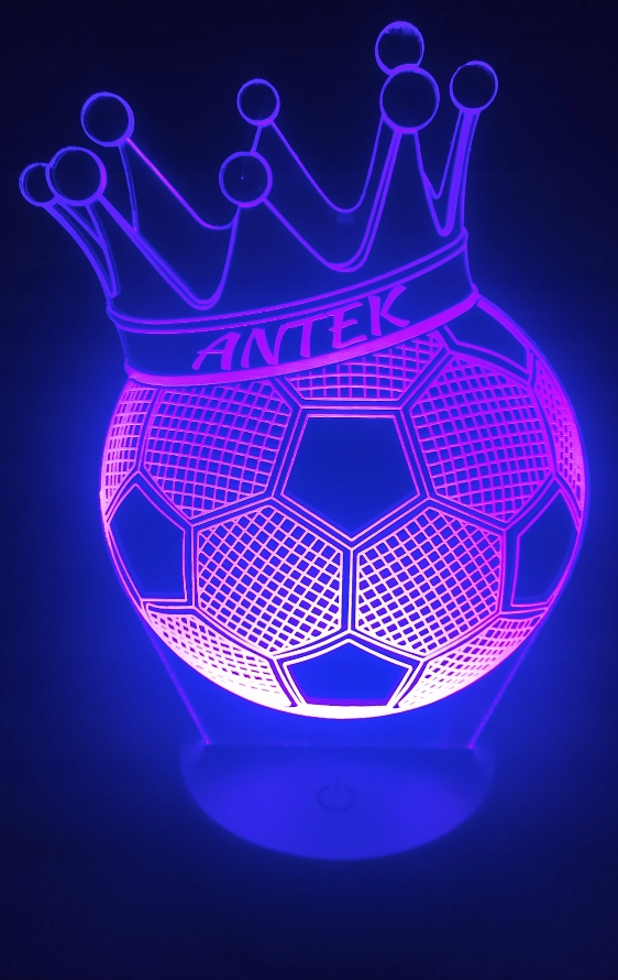 ЛАМПА 3D СВЕТОДИОДНЫЙ С ПУЛЬТОМ УПРАВЛЕНИЯ, ФУТБОЛЬНЫЙ МЯЧ С КОРОНОЙ, С ИМЕНЕМ