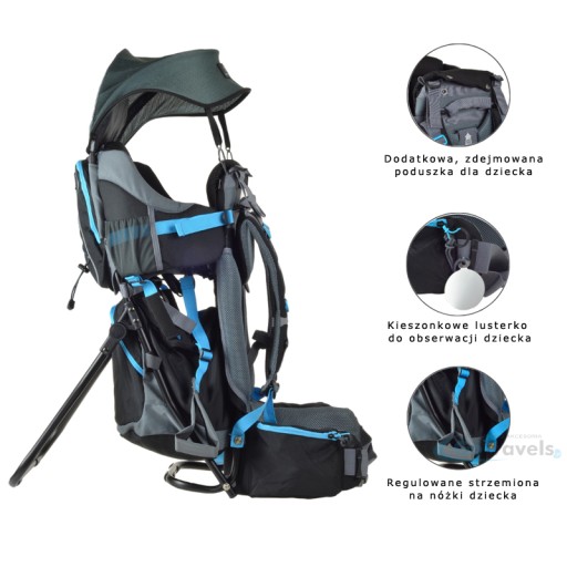 - Регульовані стремена(Підставки) для ніжок дитини будуть дуже корисними під час тривалих подорожей.