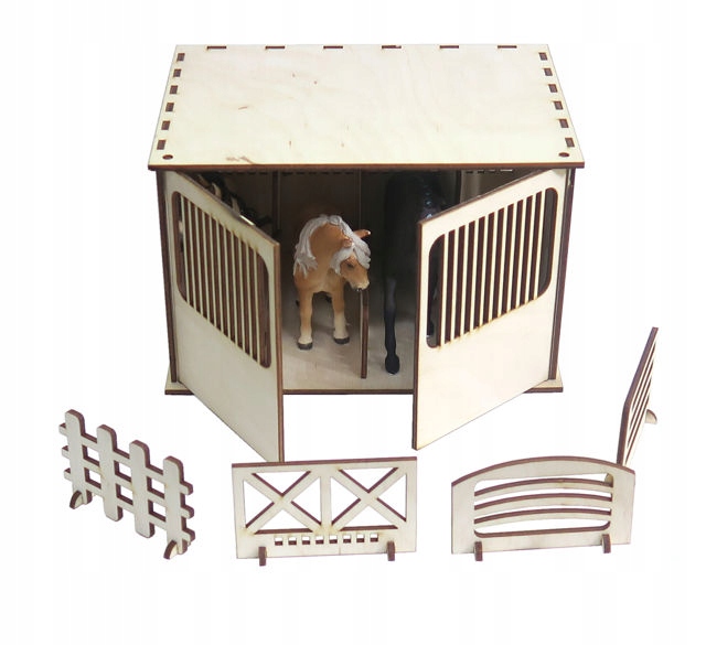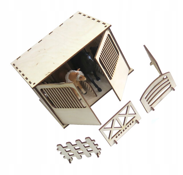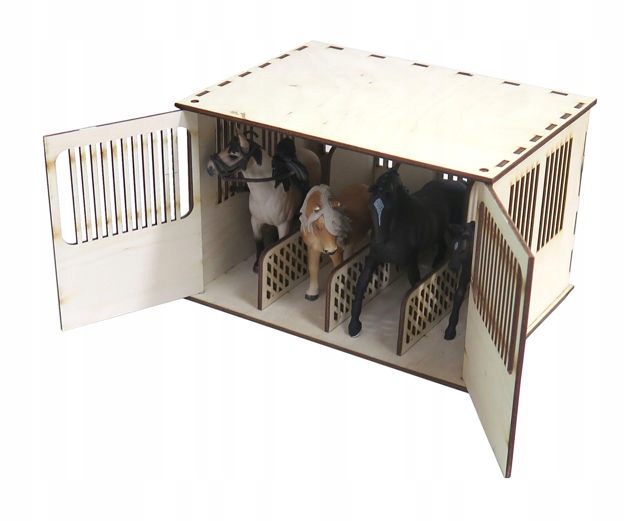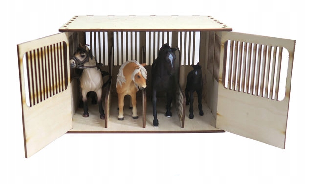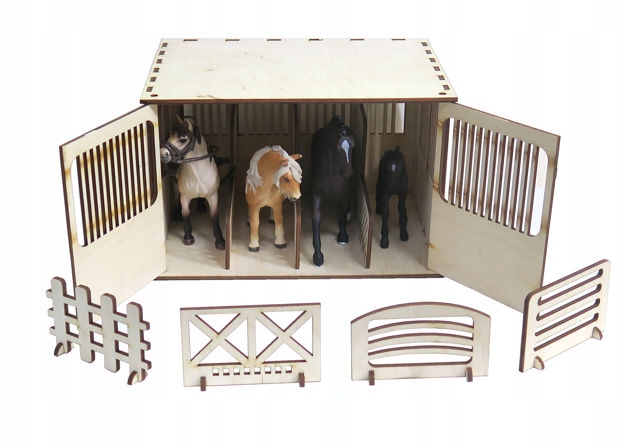 ДЕРЕВЯННАЯ КОНЮШНЯ НА ФИГУРКИ ЛОШАДЕЙ, 4 БОКСЫ KQ61